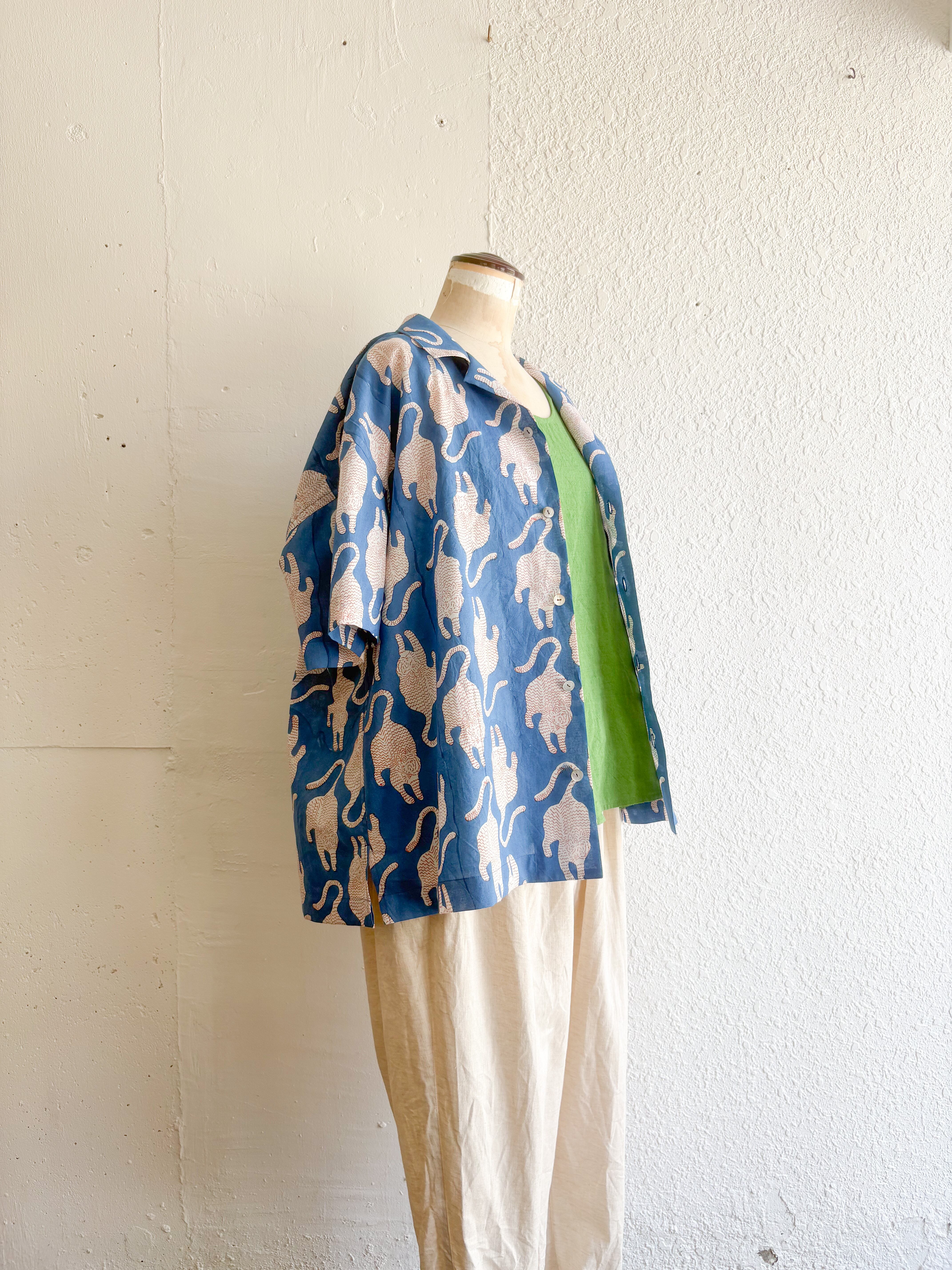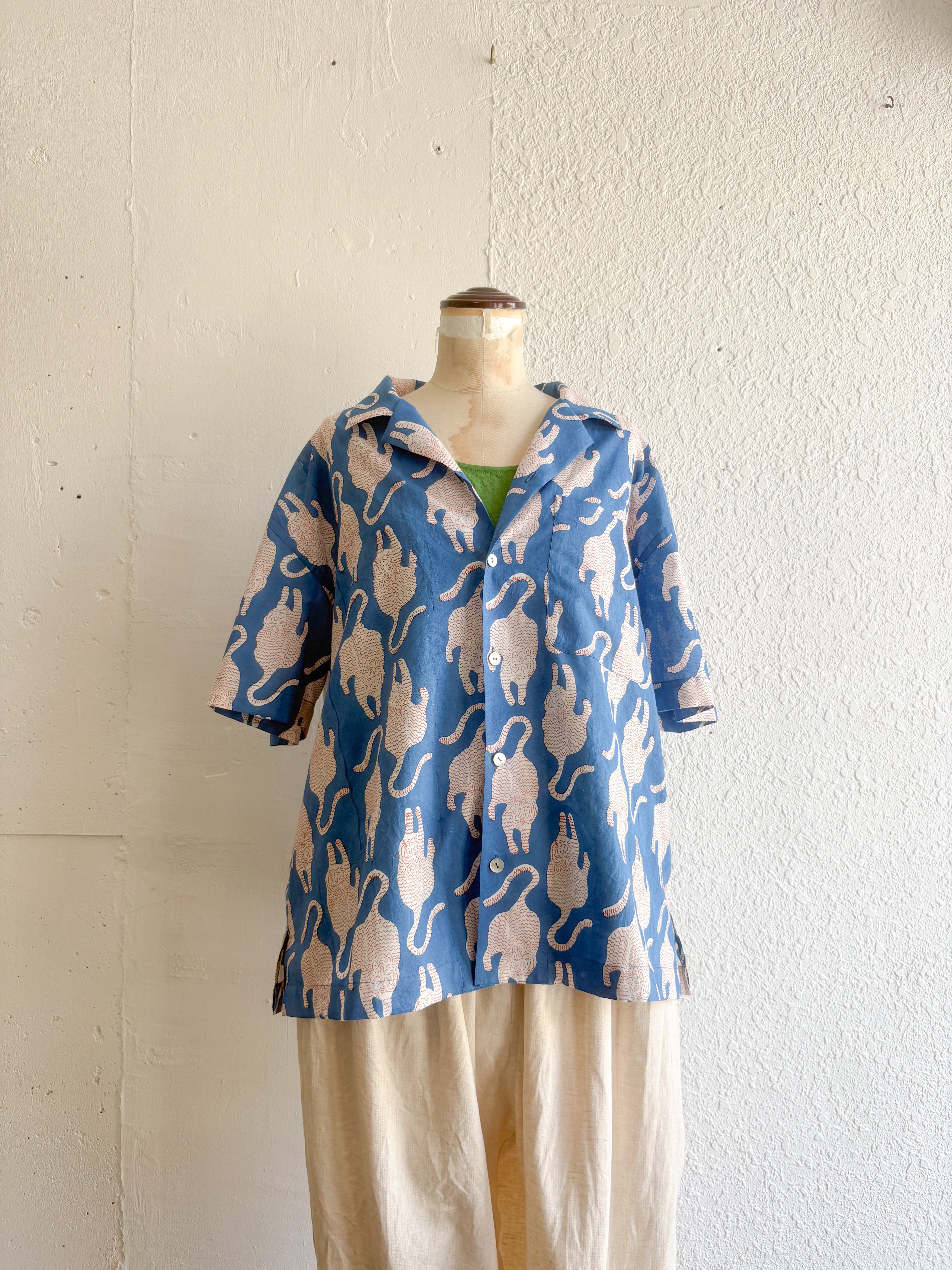 インドのブロックプリントの生地を使用したカイキンシャツができました。