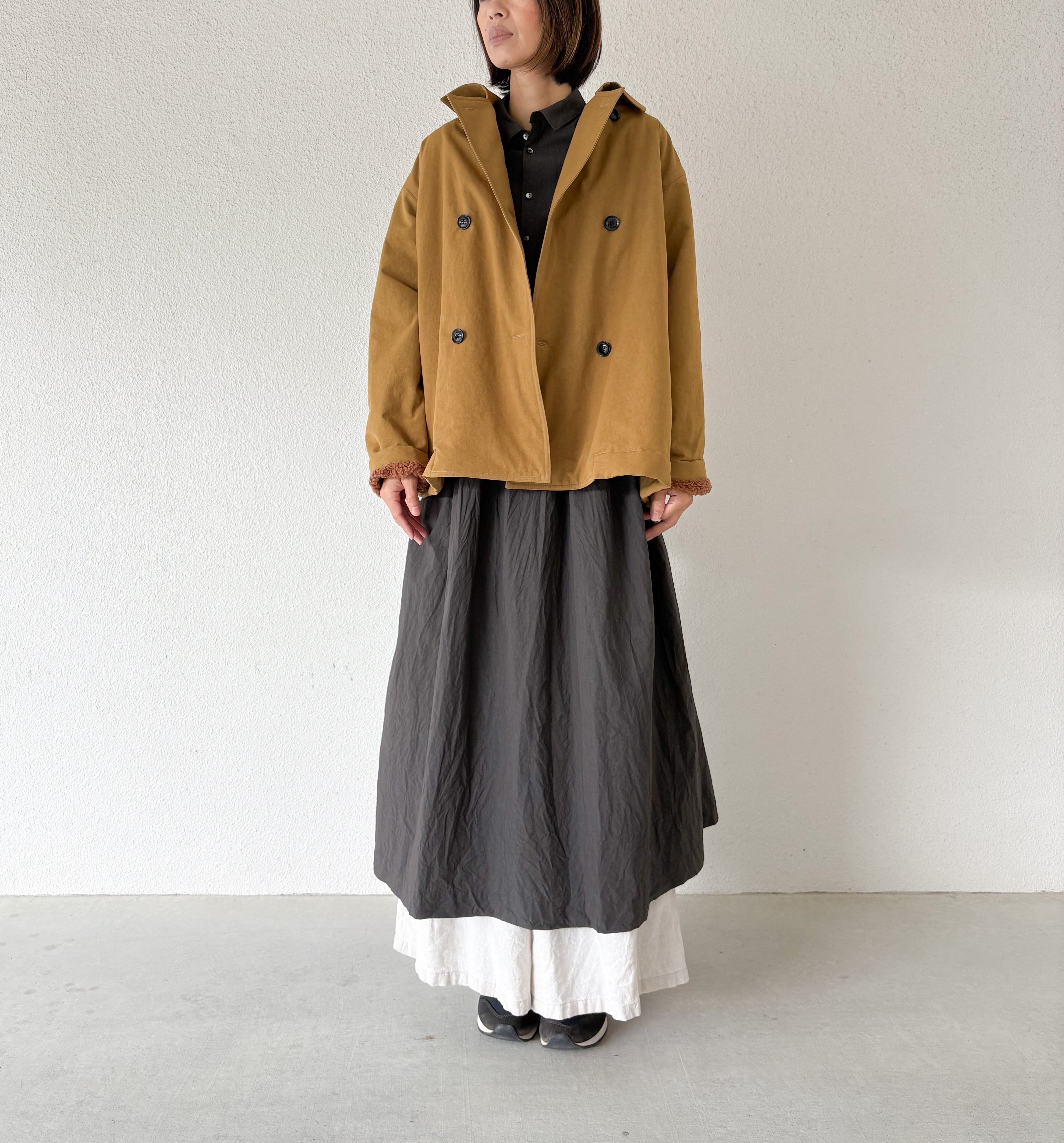 厚手のコットンポプリン素材を使用したとってもかわいいトレンチ風のショート丈コートができました!
