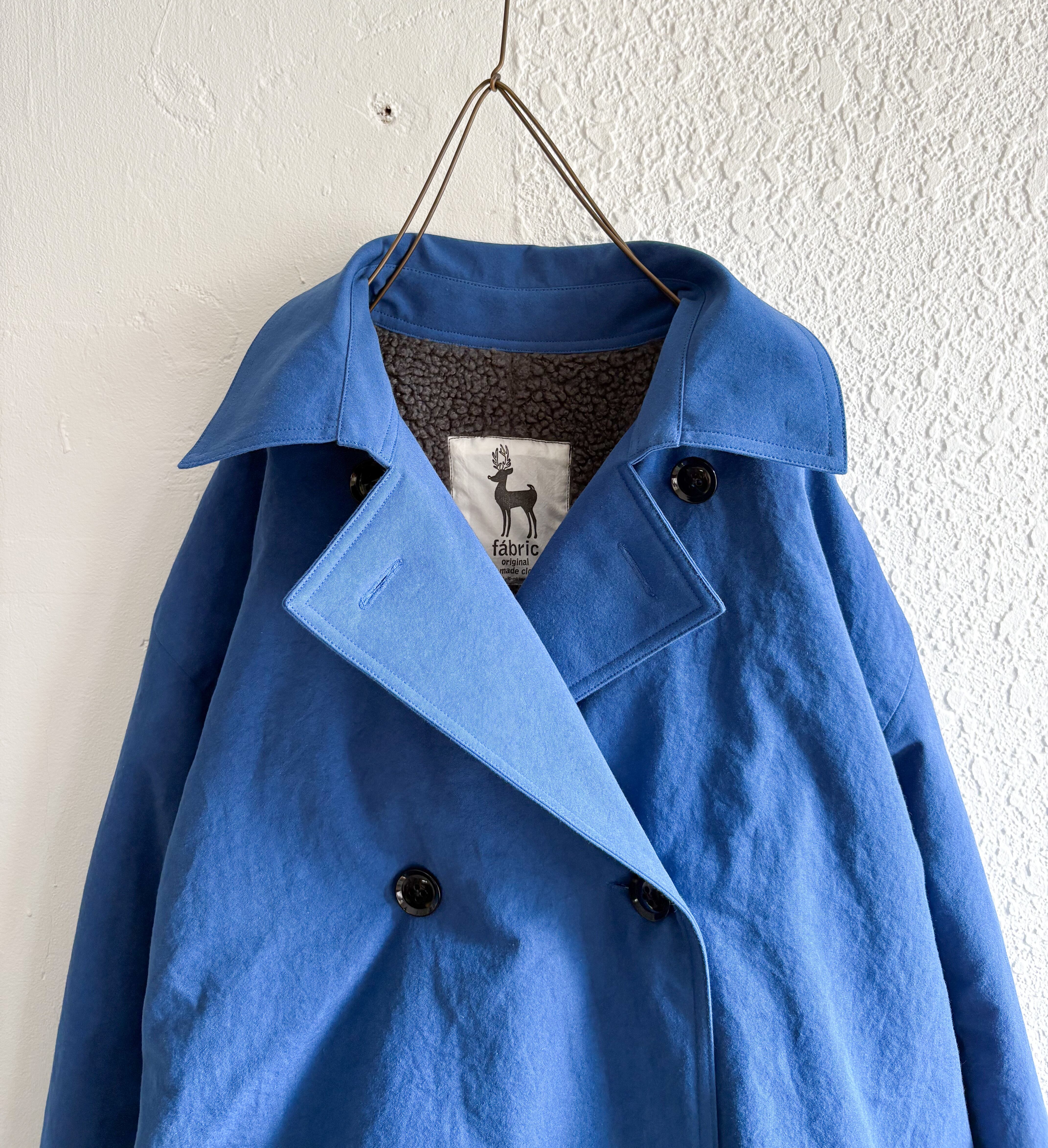 コットンポプリンとは織地が密で特有の光沢感が有り、さらに風合いが良く着心地の良い素材です。シンプルなデザインに表情のある素材を組み合わせて、着る度洗濯する度に表情が少しずつ変わりまた次も着たくなるコートに仕上がっています。