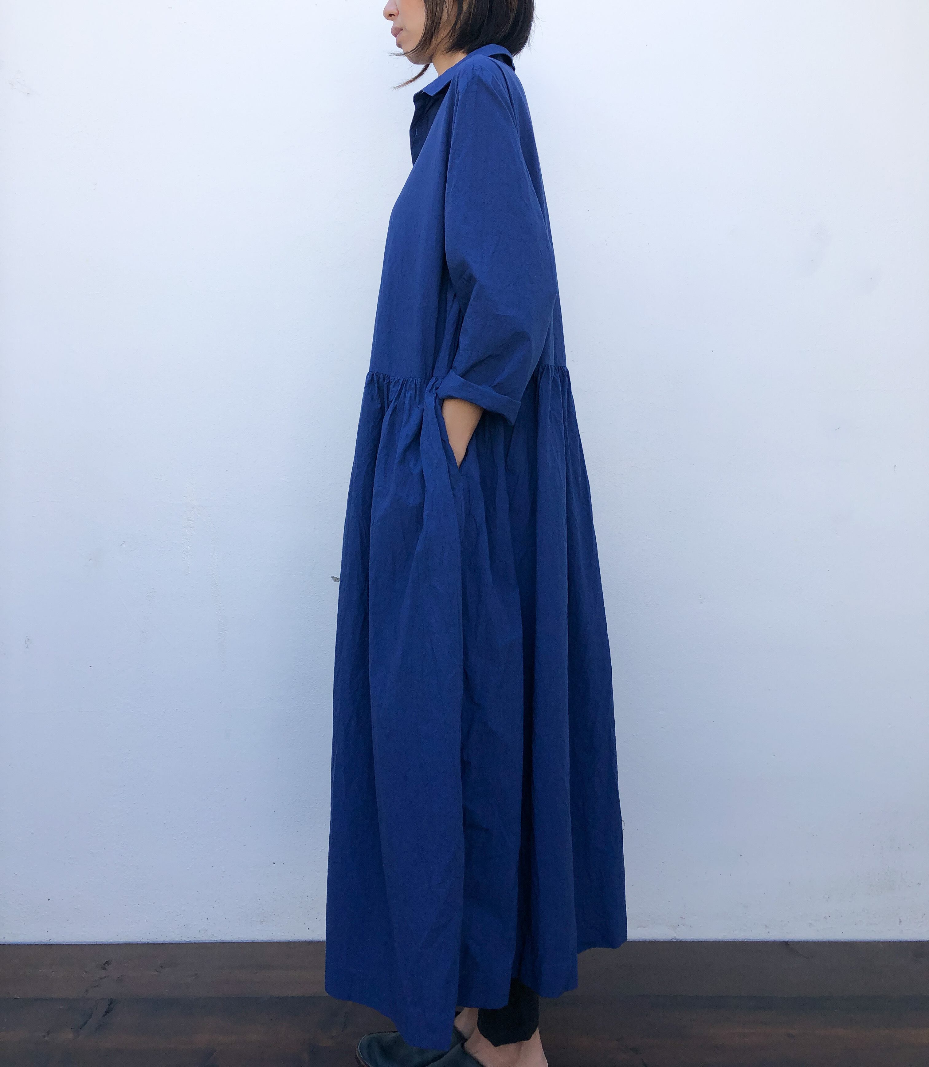 ウエスト切り替えからのスカート部分には贅沢に生地を使用してギャザーをたくさん入れていますので、風が吹く度、歩くたびに綺麗なドレープがお楽しみいただけます。