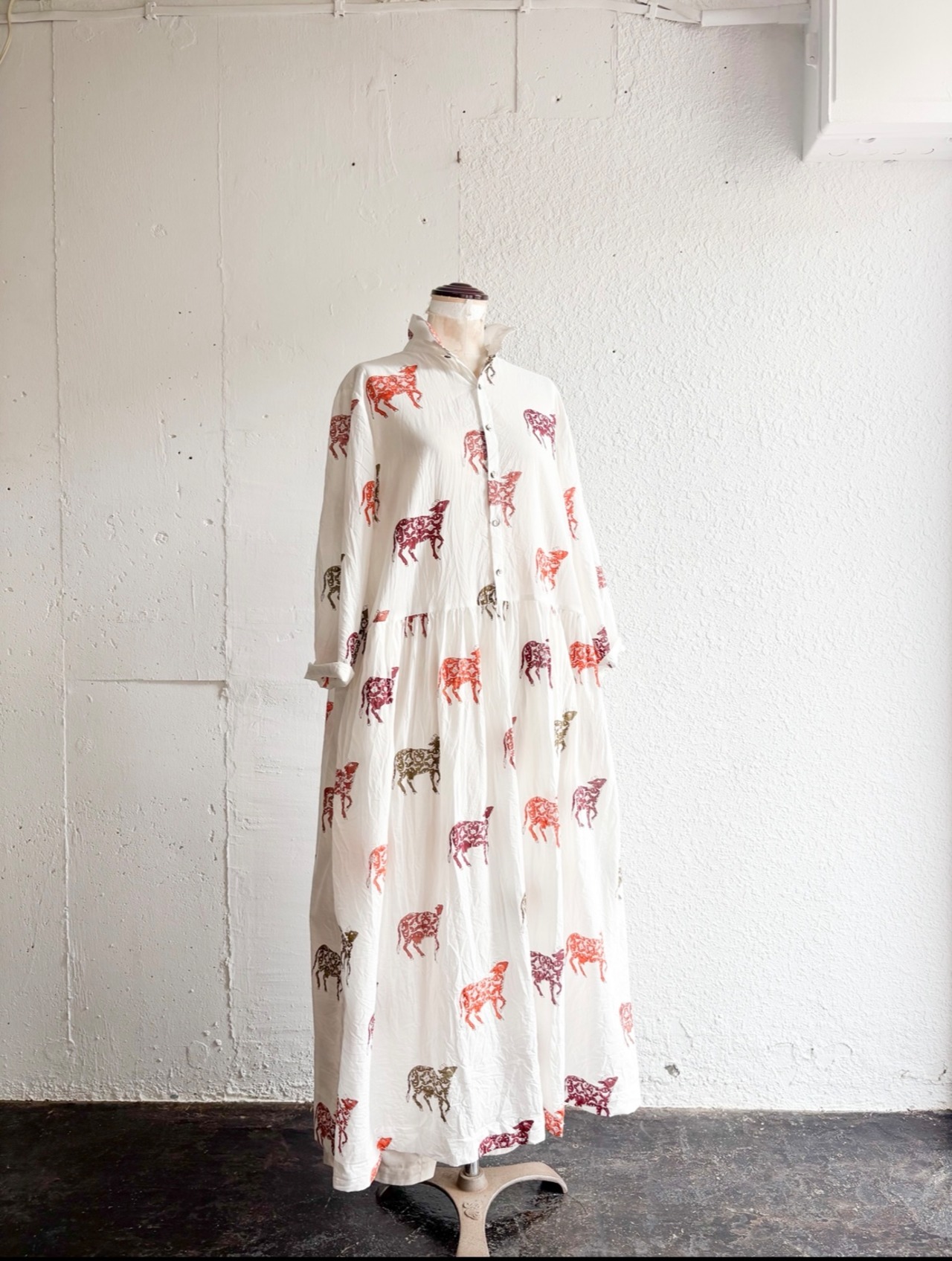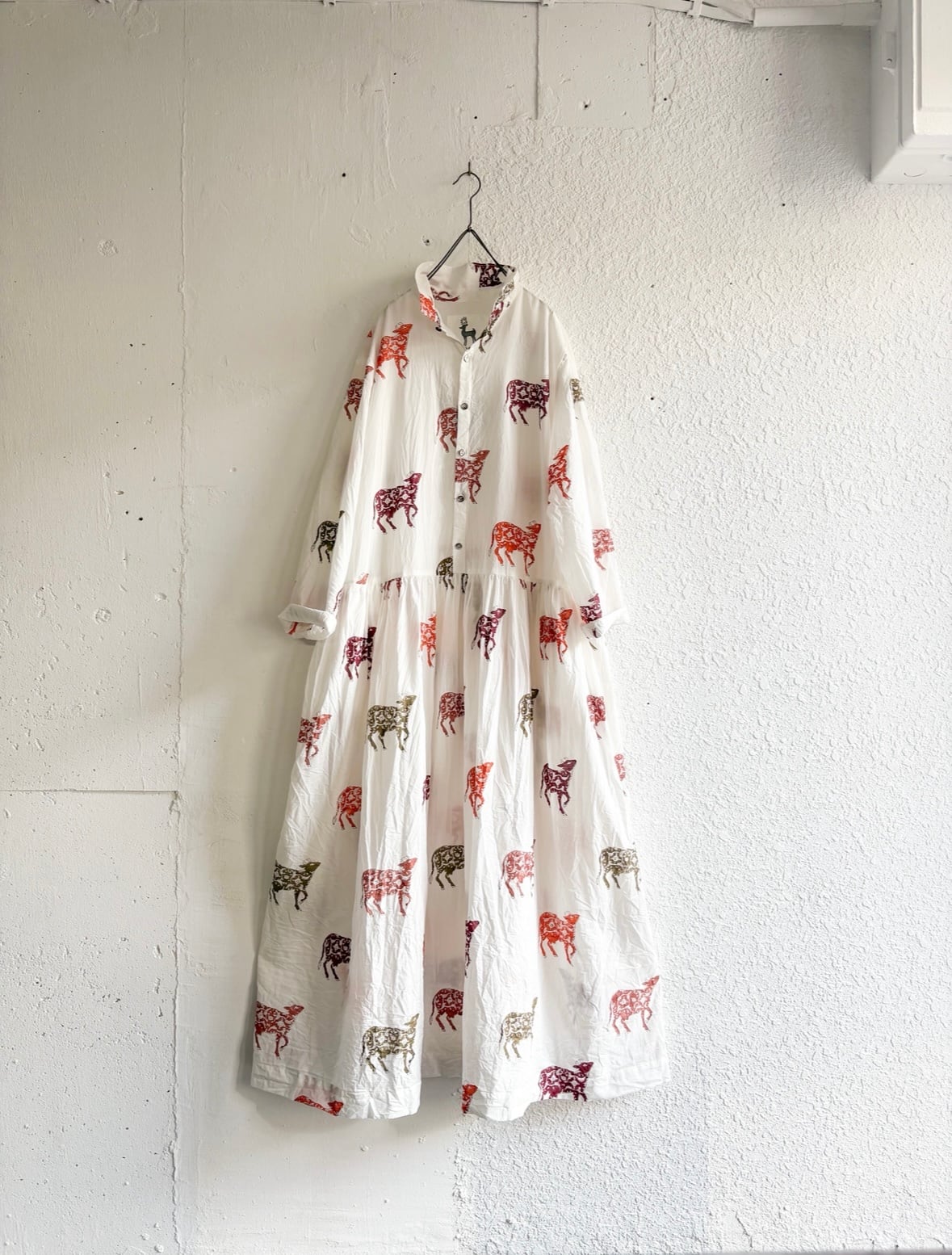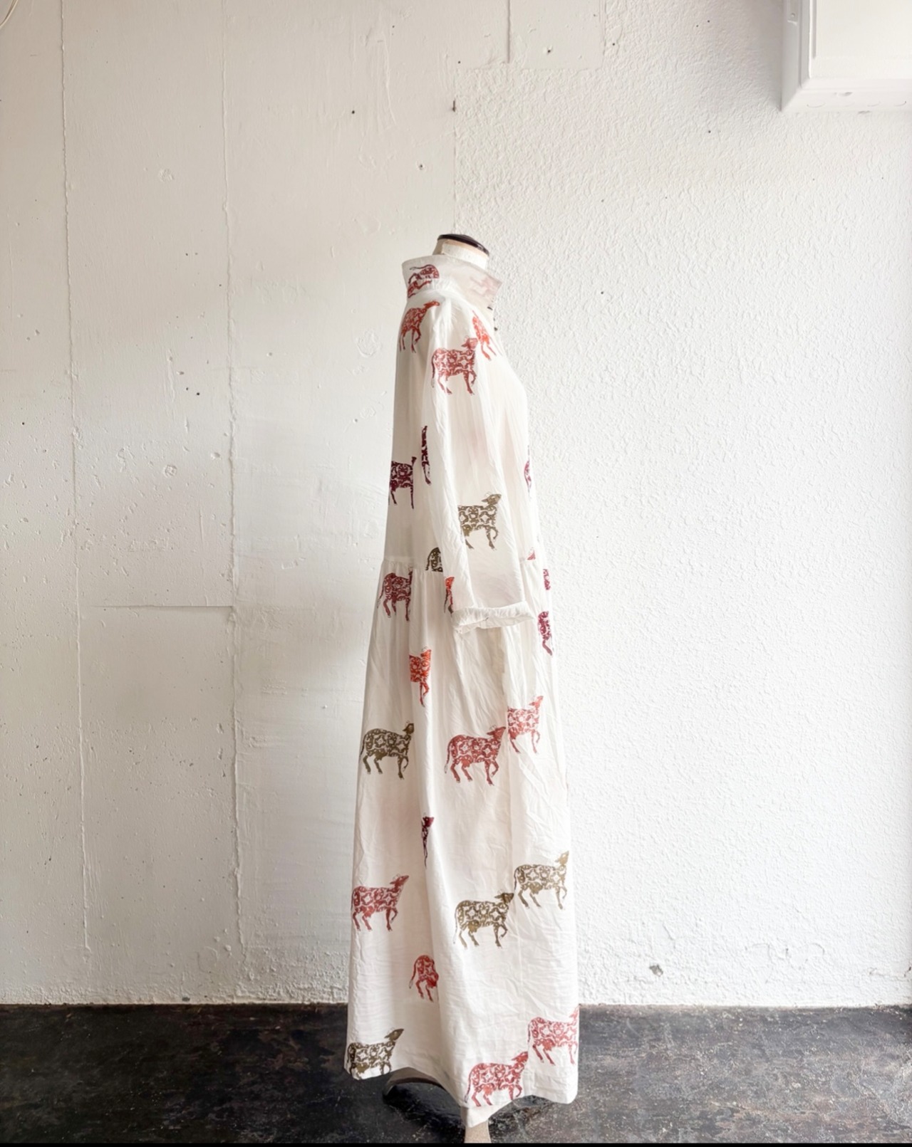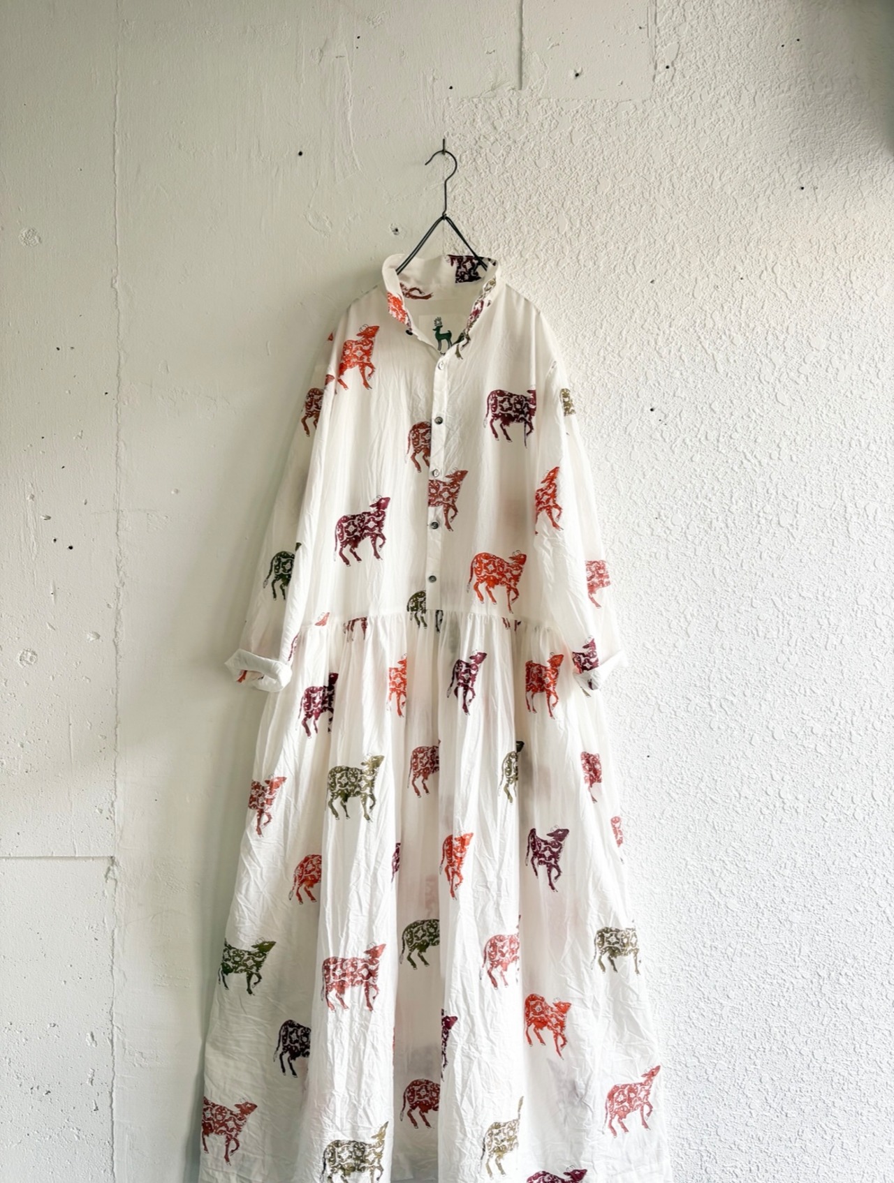India block print プルオーバーシャツワンピース Flower Cow