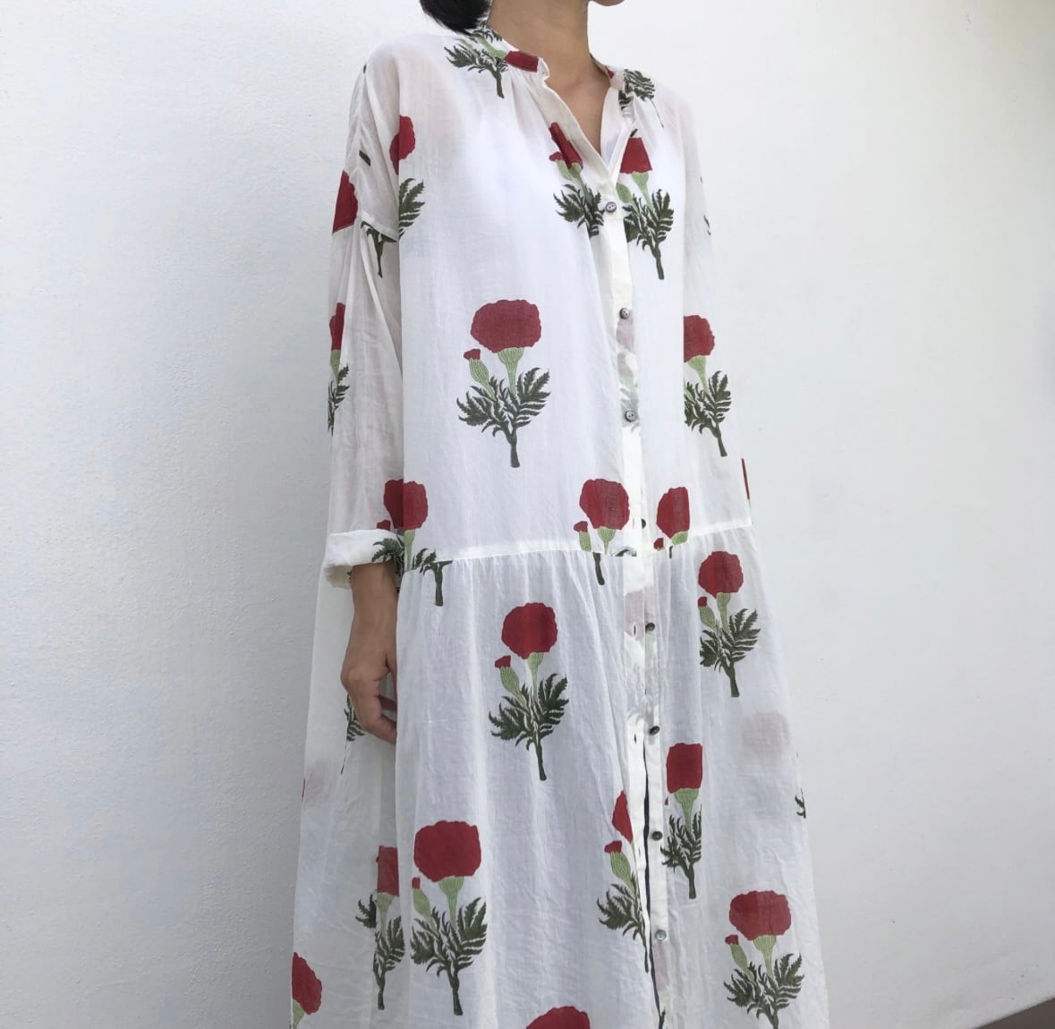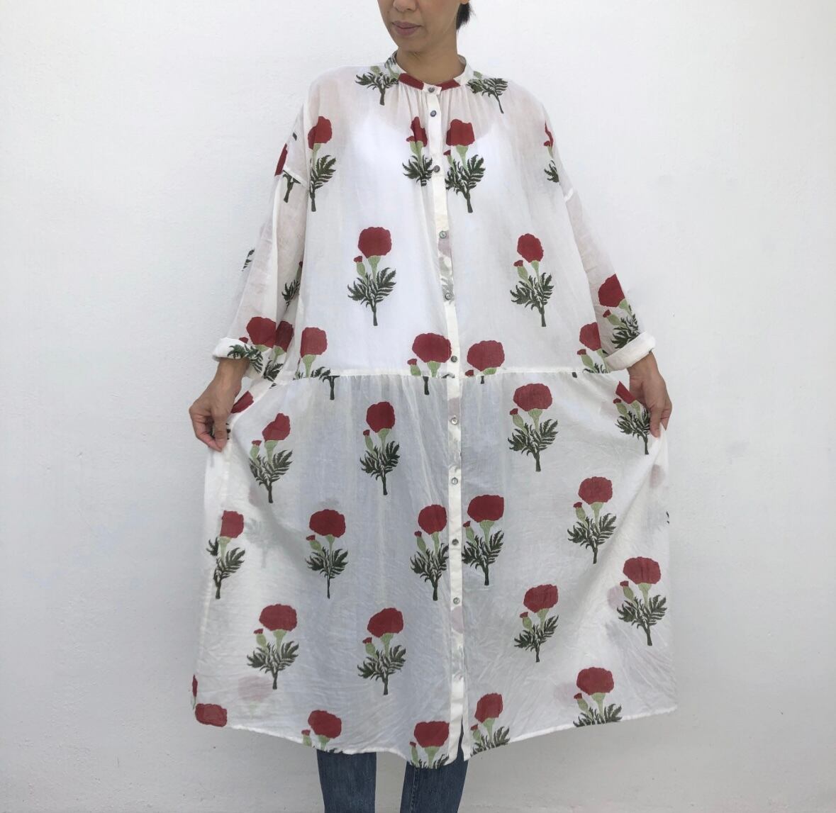 軽くて柔らかいインドの生地は気温の高低差が有る秋や春の季節にピッタリです。ロング丈のシャツワンピースは、ワンピースとしてはもちろん日除け、羽織物として持ち歩きにも便利です!ボトムにはデニムを合わせたり、スカートを合わせたりとコーディネイトの幅も広いので着回しが利くワードローブとして大活躍してくれそうです!