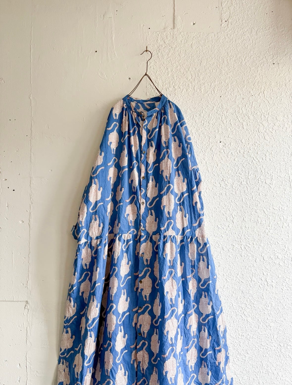 お馴染みの虎柄の生地で以外と作ったことのなかったティアードシャツワンピースを作ってみました。