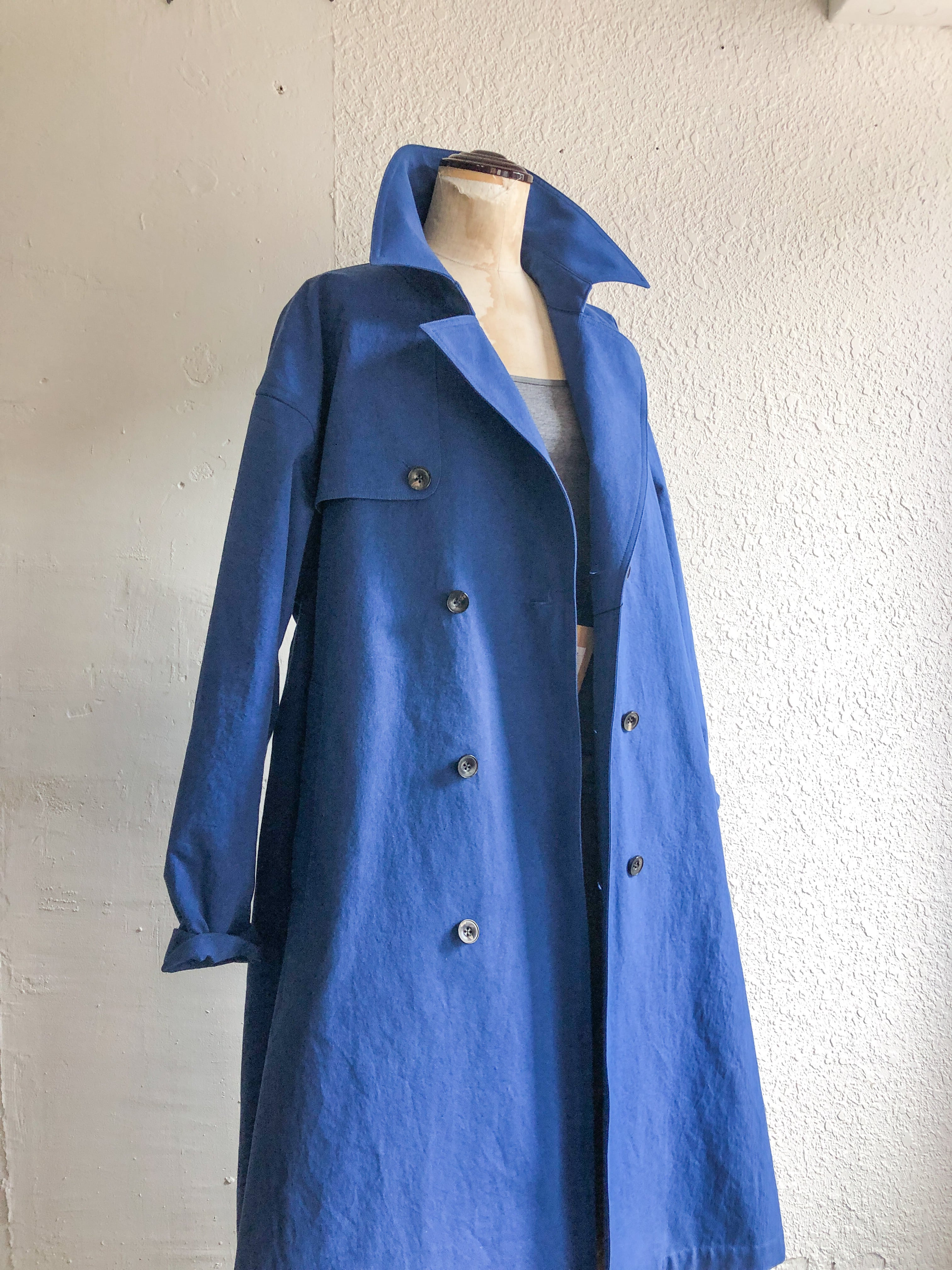 今回は肩を落とした柔らかい印象と少しのオーバーサイズを組み合わせて、ゆるめのトレンチコート風に仕上げました。