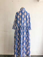 とても軽くて、柔らかいインドのブロックプリントの生地をしよプルオーバータイプのシャツワンピースです。