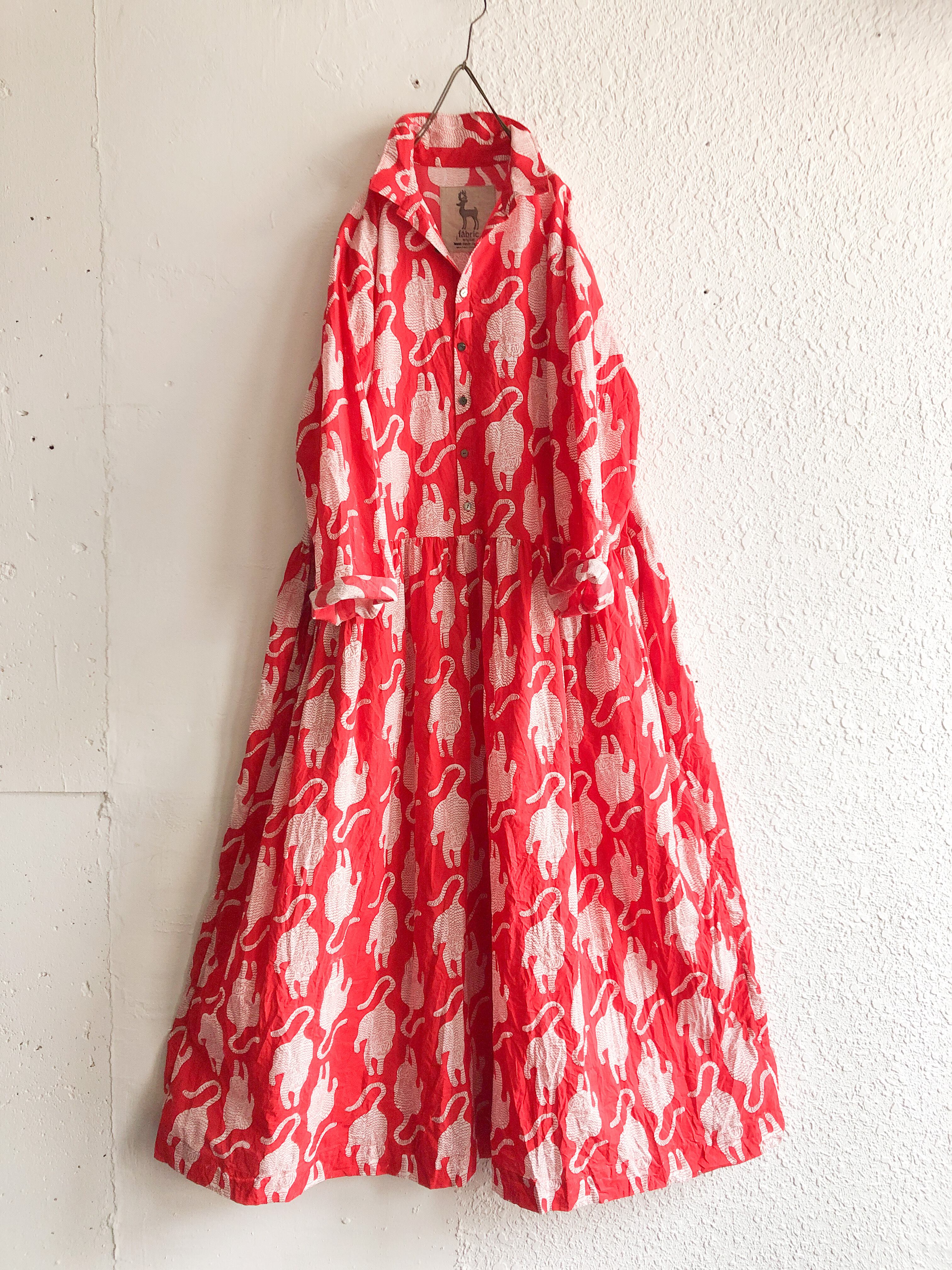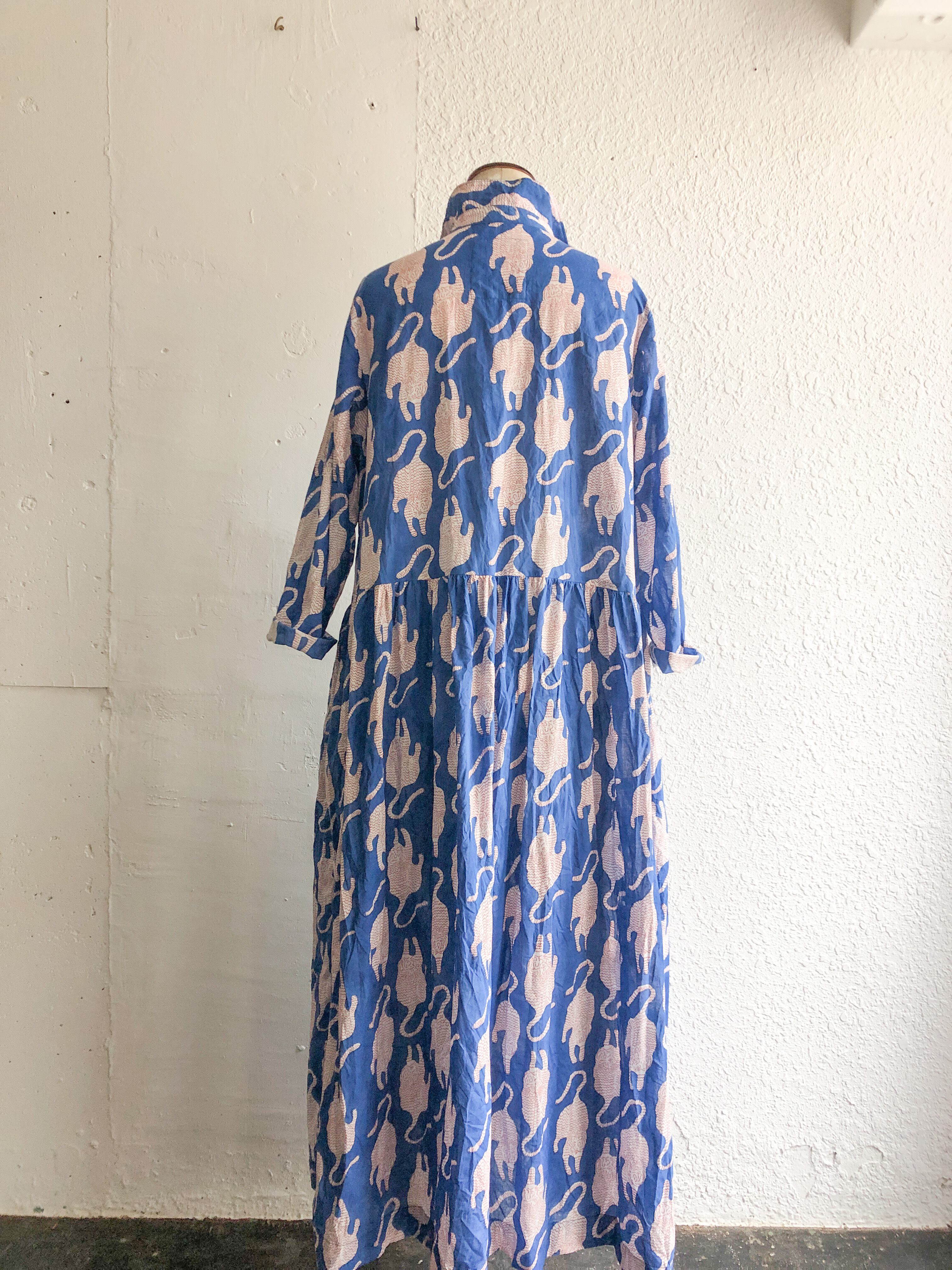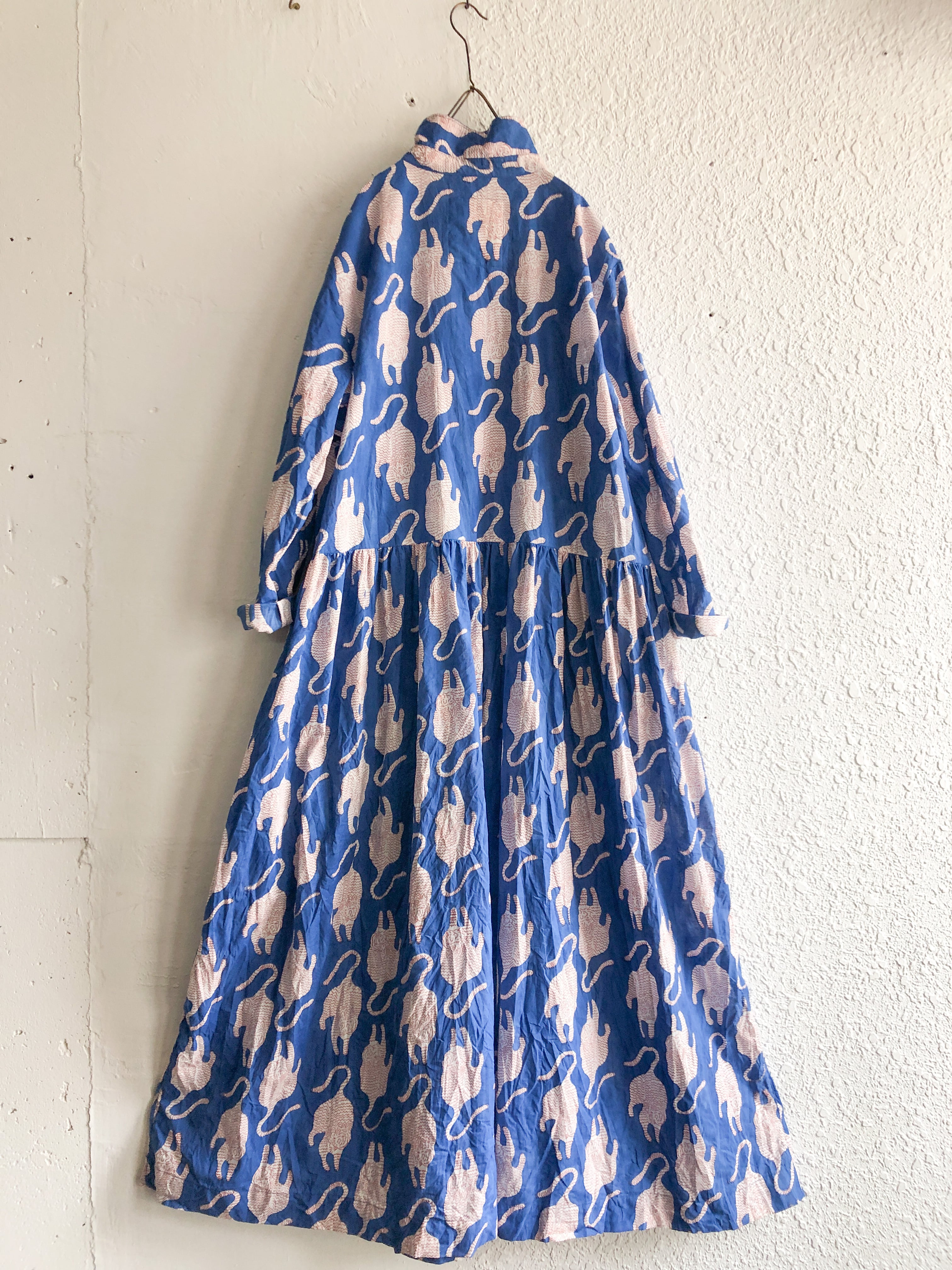 India block print プルオーバーシャツワンピース 虎