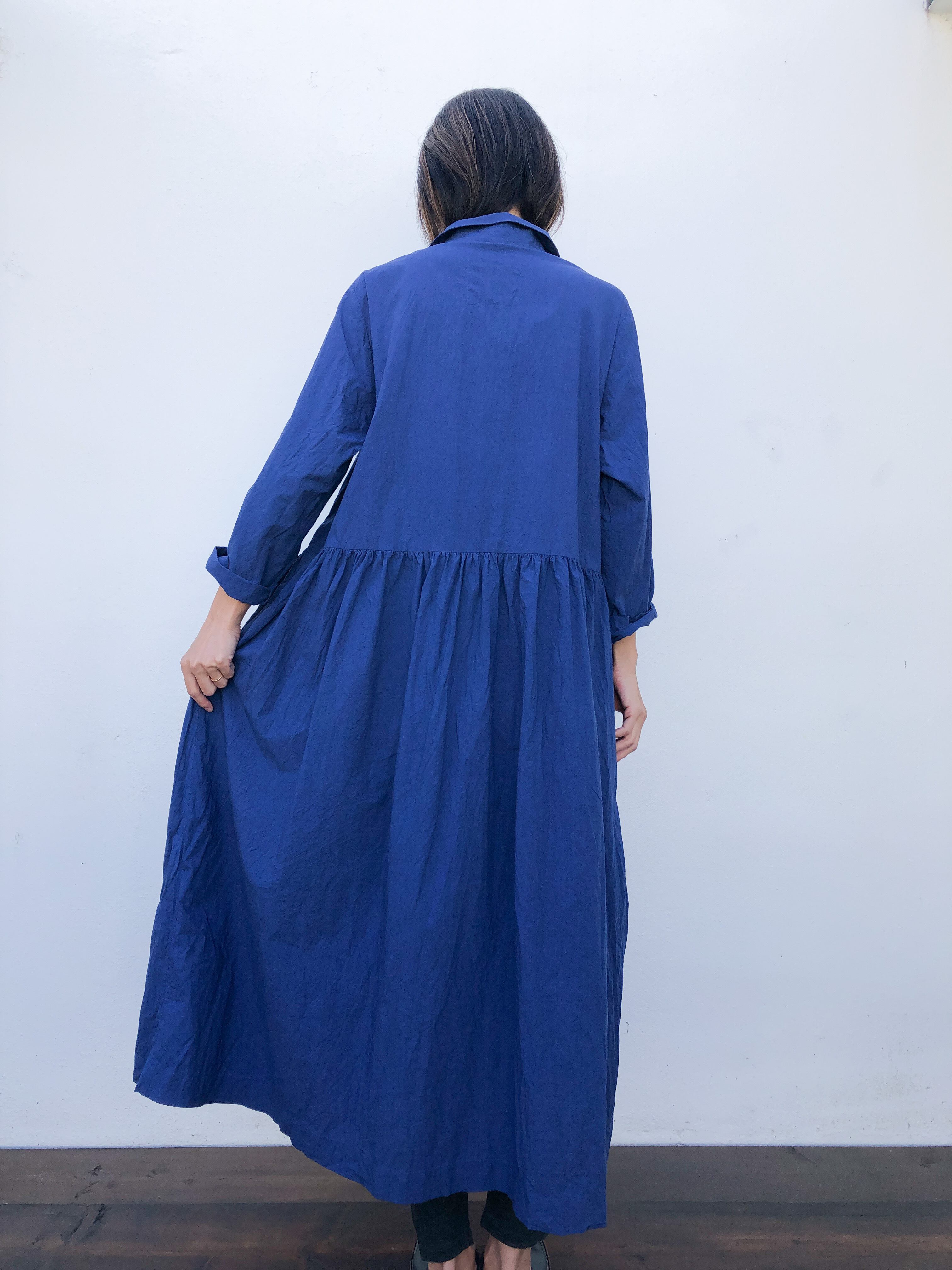 ウエスト切り替えからのスカート部分には贅沢に生地を使用してギャザーをたくさん入れていますので、風が吹く度、歩くたびに綺麗なドレープがお楽しみいただけます。